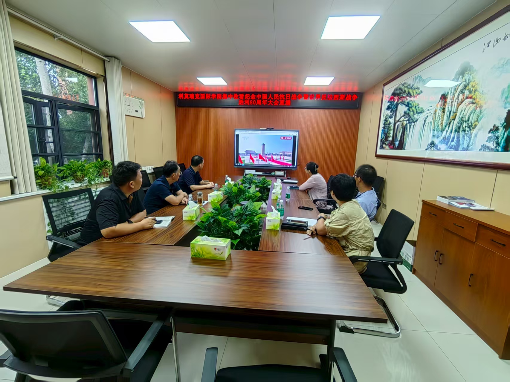 组织全体教职工集中收看纪念中国人民抗日战争暨世界反法西斯战争胜利80周年大会实况直播,共同回顾历史岁月,聆听重要讲话,弘扬抗战精神,厚植家国情怀。