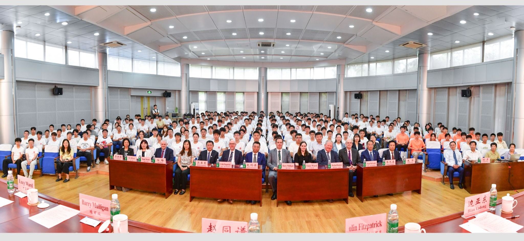 利莫瑞克大学副校长科林·菲茨帕特里克发表致辞。他介绍了利莫瑞克大学的学术传统、创新精神和国际化氛围,表达了对新生的热烈欢迎和殷切期望,期待他们在两校共同搭建的平台上追求卓越、实现梦想。