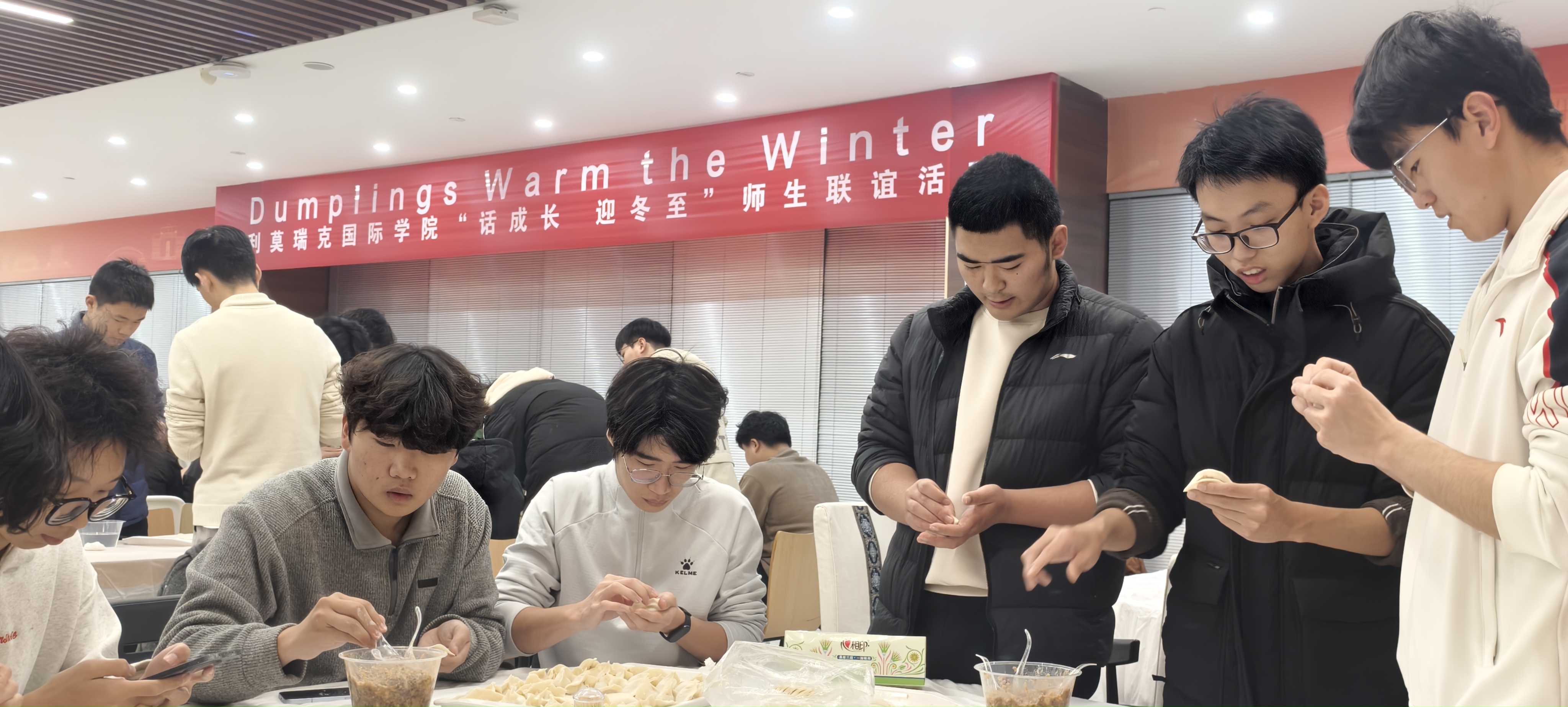 领导、辅导员老师与全体学生代表欢聚一堂,在包饺品香、文化互动中共度温馨佳节,让冬日校园洋溢着“家”的暖意。
