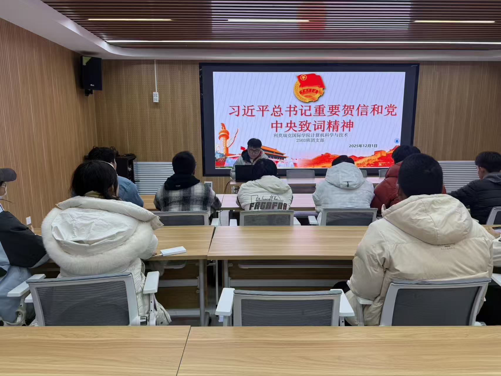 团委于2025年12月组织各基层团支部开展了“学习贺信精神,争做志愿先锋”主题团课活动。