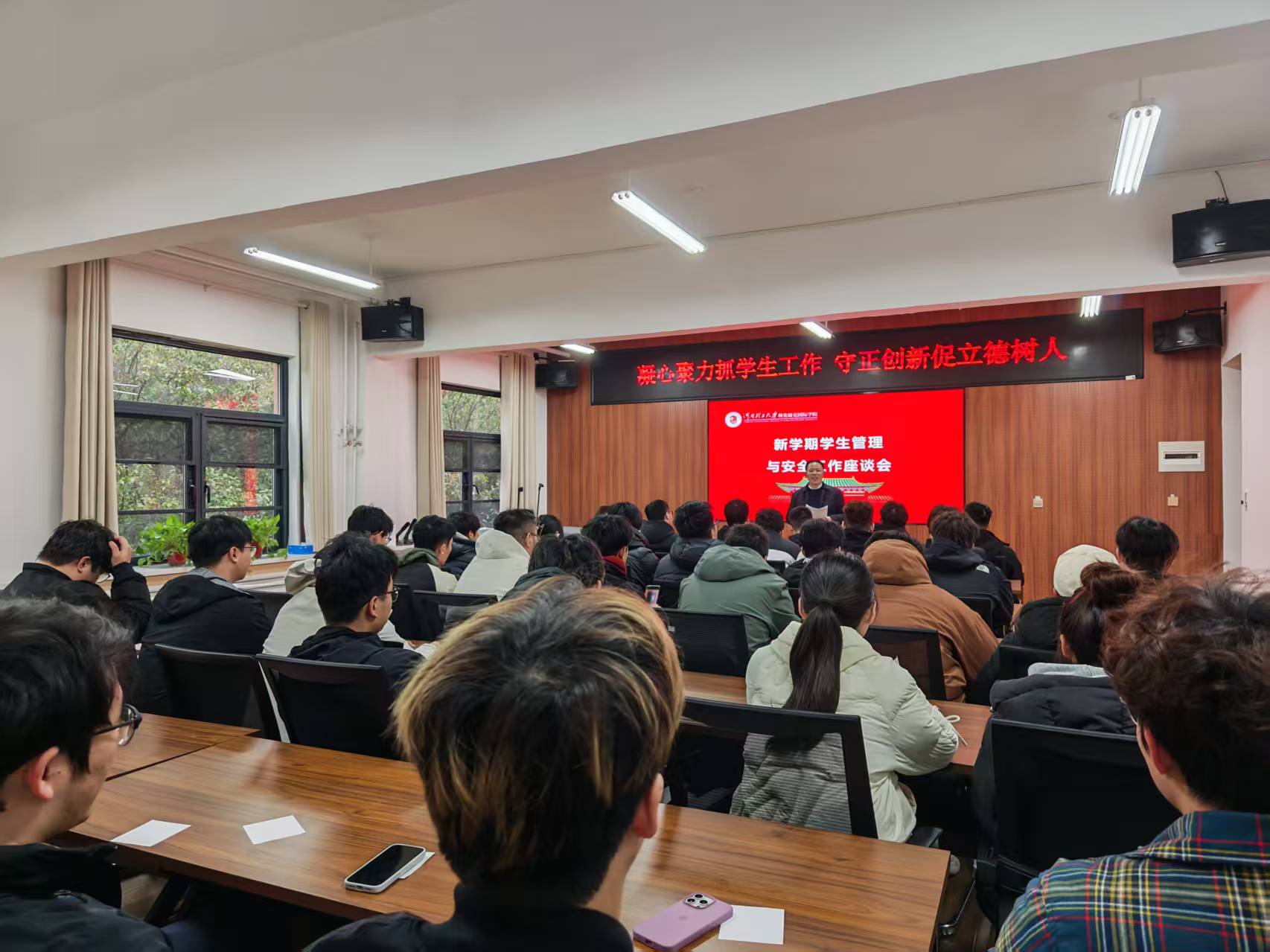 副书记朱林、学工办主任兼团委书记王小趁、辅导员李瑶锦出席并围绕学生管理与安全工作核心要点及新学期重点工作作出全面部署。