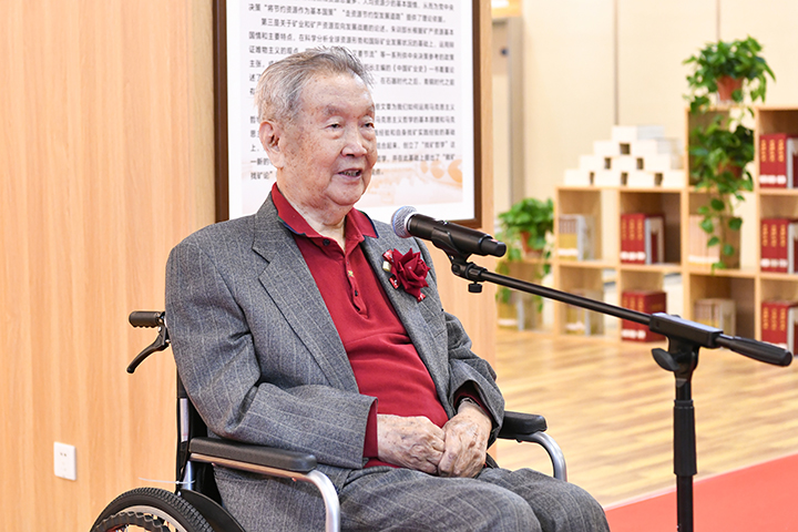 邹友峰表示,朱训先生作为地质勘探战线的著名专家,始终心怀“国之大者”,情系地矿教育事业。在百年校庆时,他设立了“朱训教育奖励基金”,激励着广大师生追求卓越、勇攀高峰。他还亲笔题词“创建一流大学,发挥学科优势”,谋划学校长远发展,多次亲临指导工作、捐赠珍贵书籍、作学术报告,给予学校高屋建瓴的引领和指导,为学校的跨越发展作出了重要贡献。“朱训书屋”中珍贵的藏书记录了朱训先生对地矿事业的卓越贡献,彰显着严谨治学的大师风范,传承着“以献身地质事业为荣、以艰苦奋斗为荣、以找矿立功为荣”的精神,饱含着对理工师生的殷切期望。希望全体师生以朱训先生为榜样,胸怀祖国、脚踏实地,追求卓越、砥砺前行,为服务国家安全生产、能源行业进步发展作出新的更大贡献。